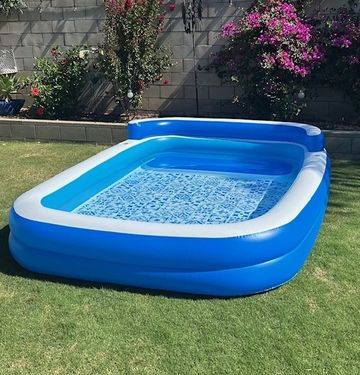 We now offer a few blow up pools to help you cool off during your backyard parties. The pool is 120" x 86" x 27".